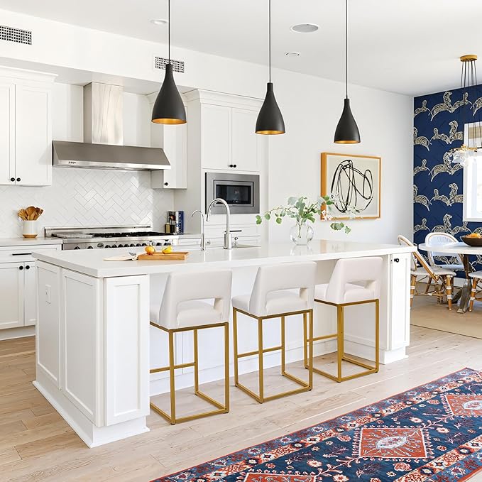 - Modern and Elegant Golden Style: The barstools boast a sleek and modern design that effortlessly complements various decor styles. Whether you have a contemporary or traditional setting, these barstools will enhance the aesthetic appeal of your space