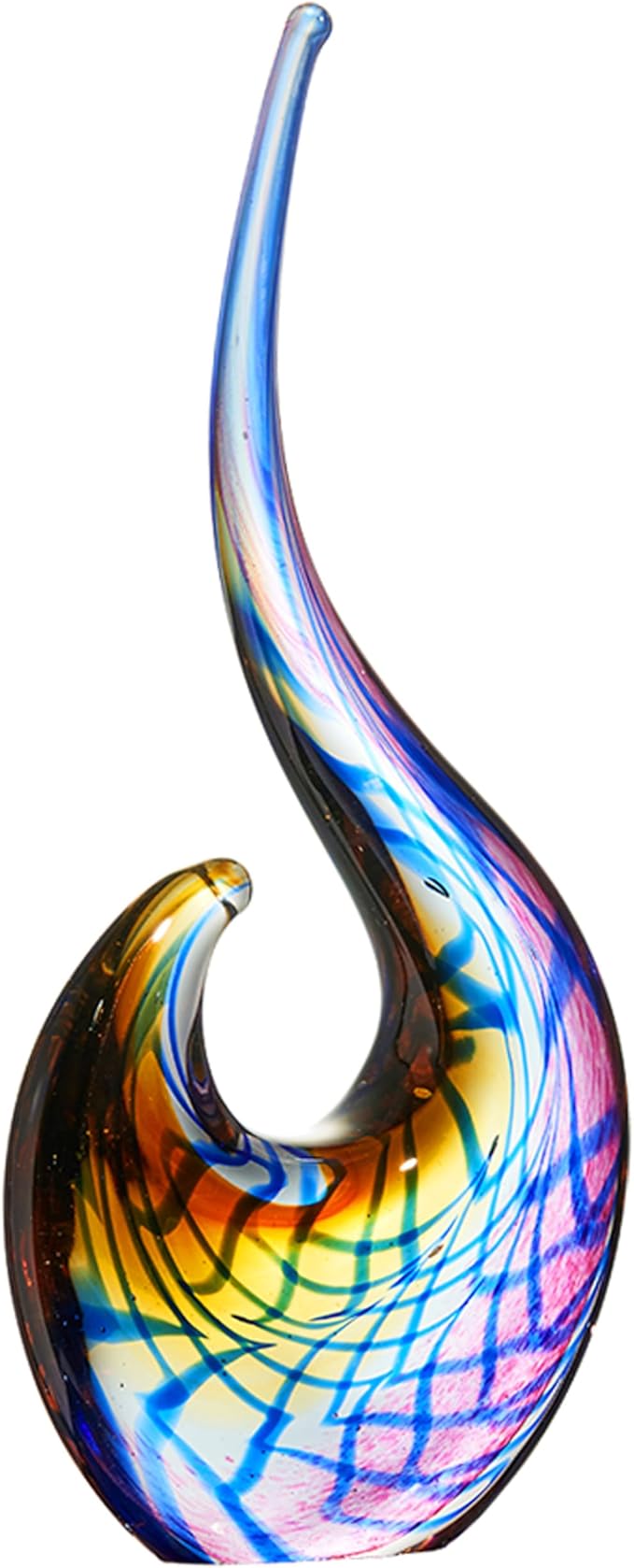 Luxury Lane Hand Blown Abstract Peacock Sommerso Art Glass Sculpture for Home Decor 15 inch Tall Centerpiece Table Decoration
