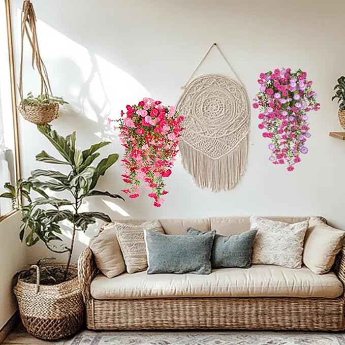 - 【Ultra-Realistic Handcrafted Blooms】Our realistic artificial petunia hanging flowers blend premium silk and eco-friendly plastics,capturing velvety petals, delicate veins, and lifelike color gradients. Each faux flower is meticulously handmade, guaranteeing a luxe, natural aesthetic that fools even the closest glance.