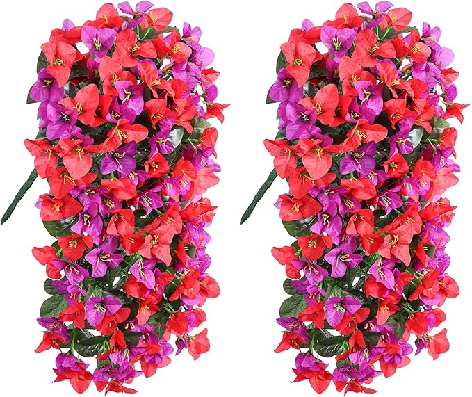 - ✅️ Realistic Hanging Flowers Home Decorations: Beautiful uv resistant artificial outdoor flowers are suitable for home, garden, yard, porch, balcony, patio, window box, urn, planter, wall, fence, indoor and outside decorations. Brings beauty to your home. These faux bougainvillea outdoor are real looking and brings spring beauty and joy to your home.