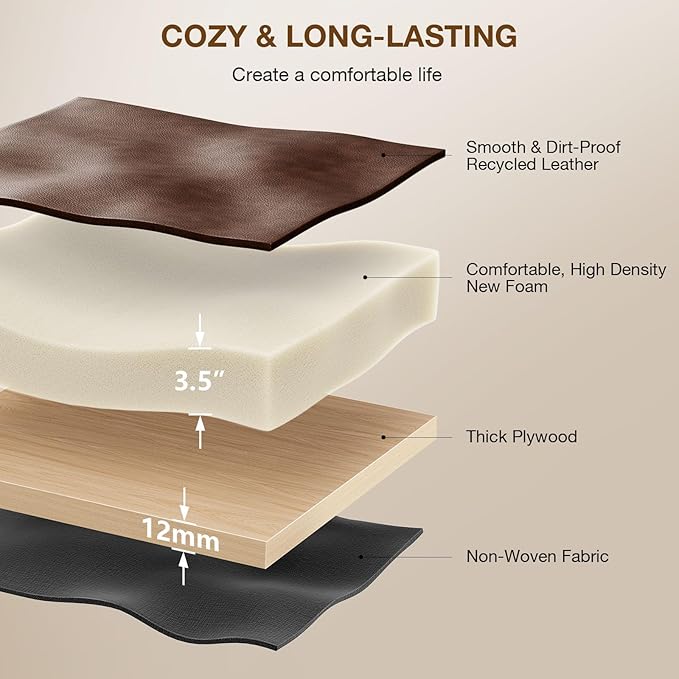 - 【Elegant Saddle Stool】The Memobarco makeup stool features premium 3mm synthetic leather upholstery for easy cleaning, with a 3.5-inch high-resilience foam cushion that delivers ergonomic comfort, and all-day relaxation.
