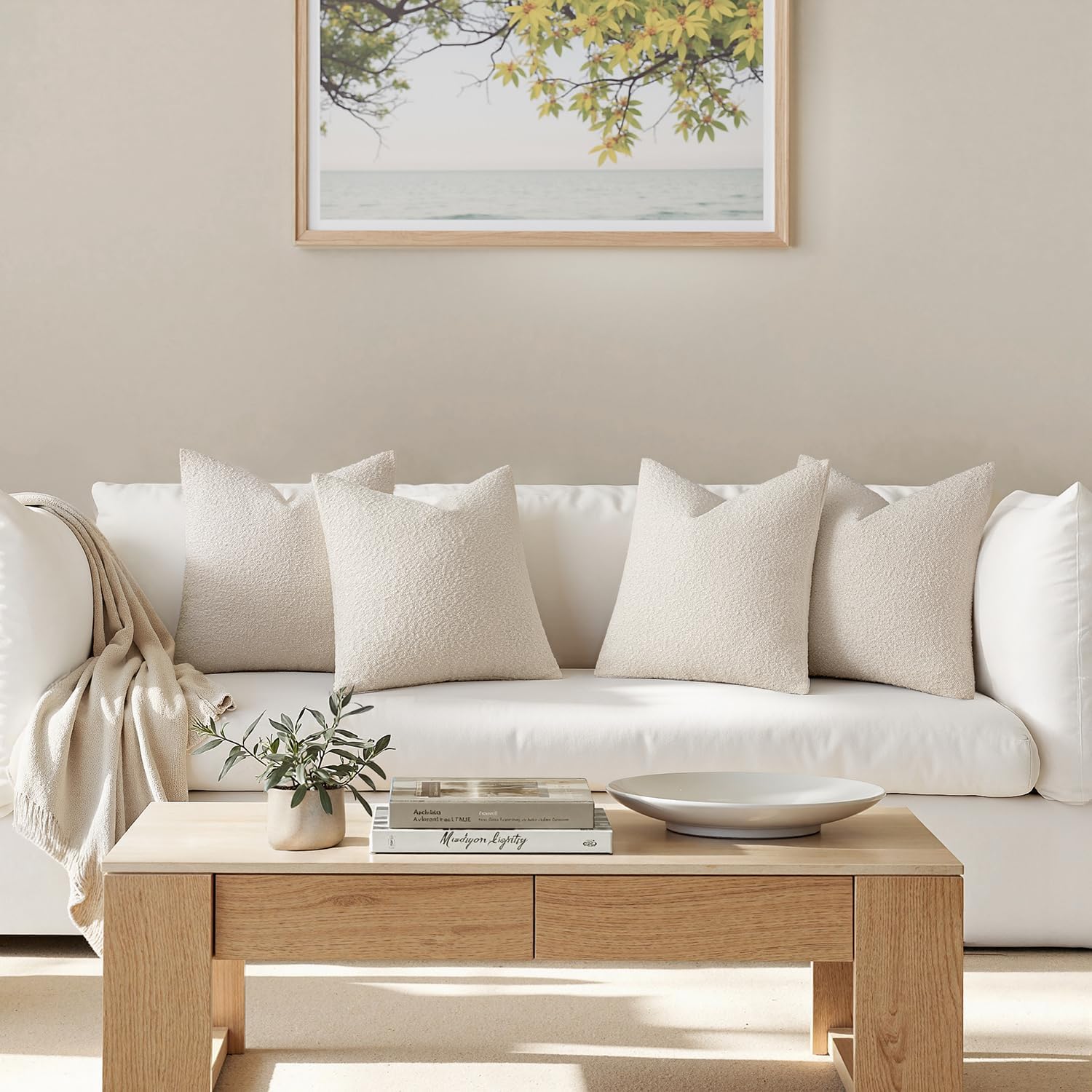 MIULEE Pack of 4 Decorative Textured Boucle Throw Pillow Covers 18x18 Inch Beige Accent Solid Pillow Cases Soft Couch Cushion Covers for Modern Farmhouse Boho Chair Sofa Bed Livingroom Home Decor