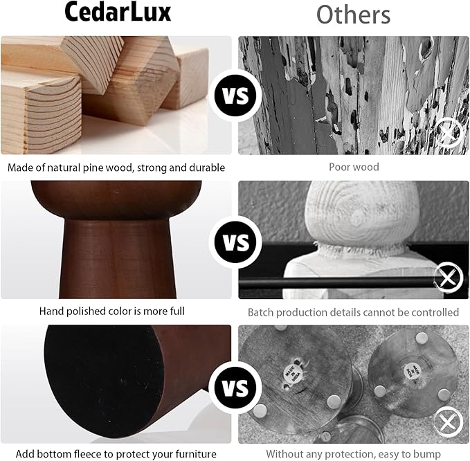 - [STURDY MATERIAL] Finely crafted to preserve the natural texture and smooth surface of the rustic candlestick. This modern candle holder is made of natural pine wood, topped with an iron wax cup, sturdy and durable. The base of the tall candlestick is equipped with felt to prevent it from sliding or scratching the furniture.