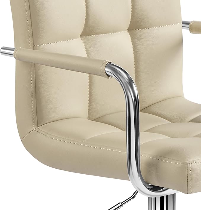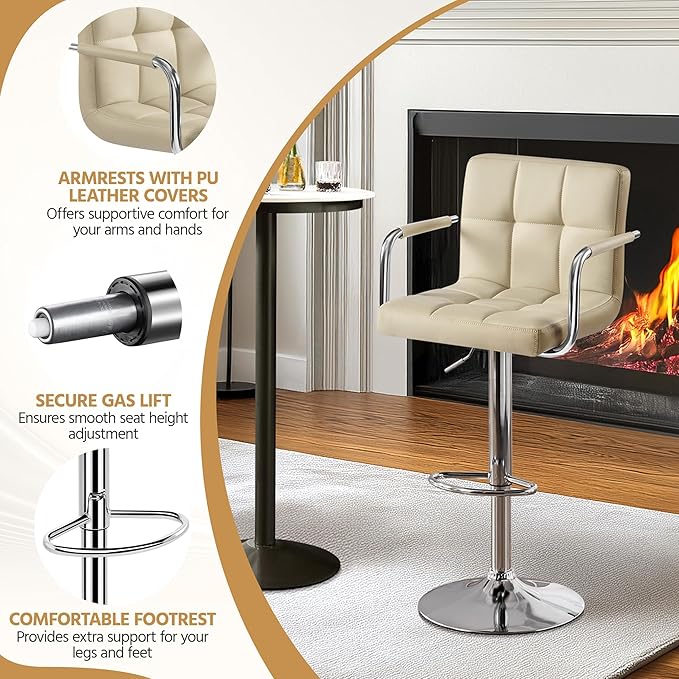 - Heavy-duty Stools: This set of 4 adjustable bar chairs is crafted from premium steel, durable PU leather, and high-density foam. The silver-plated finish on the legs, armrests, and footrest is water- and scratch-resistant, ensuring long-lasting durability. Each stool supports up to 300 lb