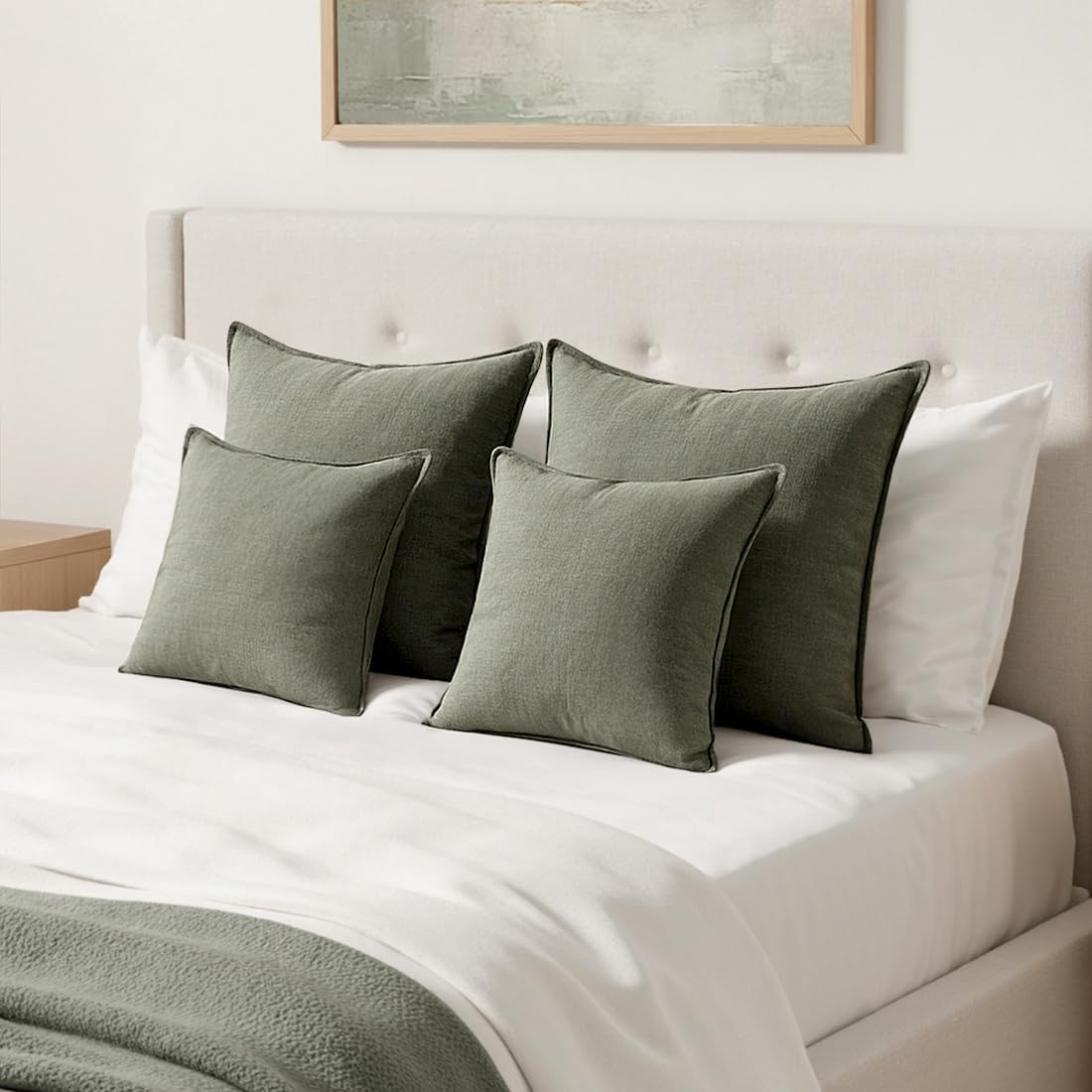 MIULEE Decorative Linen Pillow Covers 24x24 Inch Olive Green Boho Farmhouse Neutral Couch Throw Pillows for Bed Pack of 2 Accent Outdoor Pillowcase Modern Sofa Cushion Livingroom Home Decor