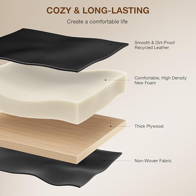 - 【Elegant Saddle Stool】The Memobarco makeup stool features premium 3mm synthetic leather upholstery for easy cleaning, with a 4-inch high-resilience foam cushion that delivers ergonomic comfort, and all-day relaxation.