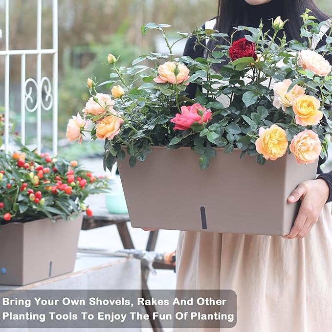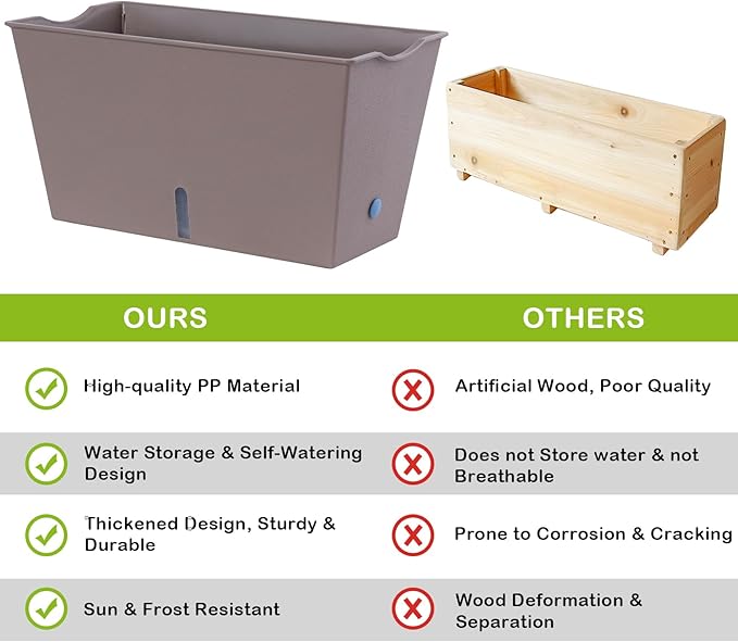 - 【Premium & Durable】This self-watering planter pot has a marble frosted design, which is very textured and it uses high-quality PP material to provide an all-round growing environment for plants, keep your plants growing healthily. This window box planter is sturdy, wear-resistant and durable. It can be exposed to light, wind, and sunlight for long periods of time, with a lifespan of decades. It is an excellent planter box for both indoor and outdoor.