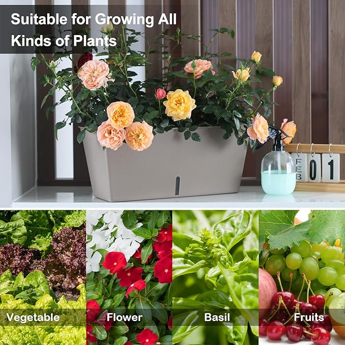 - 【Self Watering Plant Pots】Our Plant Pots are set of 6 pieces, and the size of the pot is about L12.6 x W6.5 x H11.6 inches, it is large enough to support any projects and ideas. Please note that plants in the images are not included! Perfect for growing all kinds of plants, like herbs, flowers, foliage, grass, cactus, succulents, ferns, arborvitae and more.