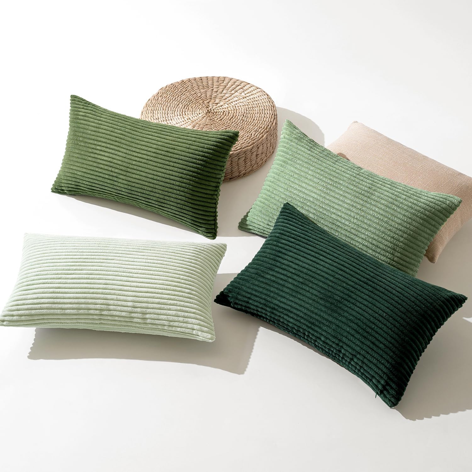 MIULEE Boho Farmhouse Sage Green Throw Pillow Covers 12x20 Inch Set of 4 Mordern Nordic Cushion Covers Soft Corduroy Christmas Home Decor for Couch Bed Sofa Living Room Forest Green