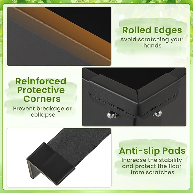 - Safety & Easy Assembly: The metal garden planter features rolled edges and protective corners, enhancing safety and added sturdiness during use. Coming with detailed instruction and simple structure, the flower growing box is easy to assemble.