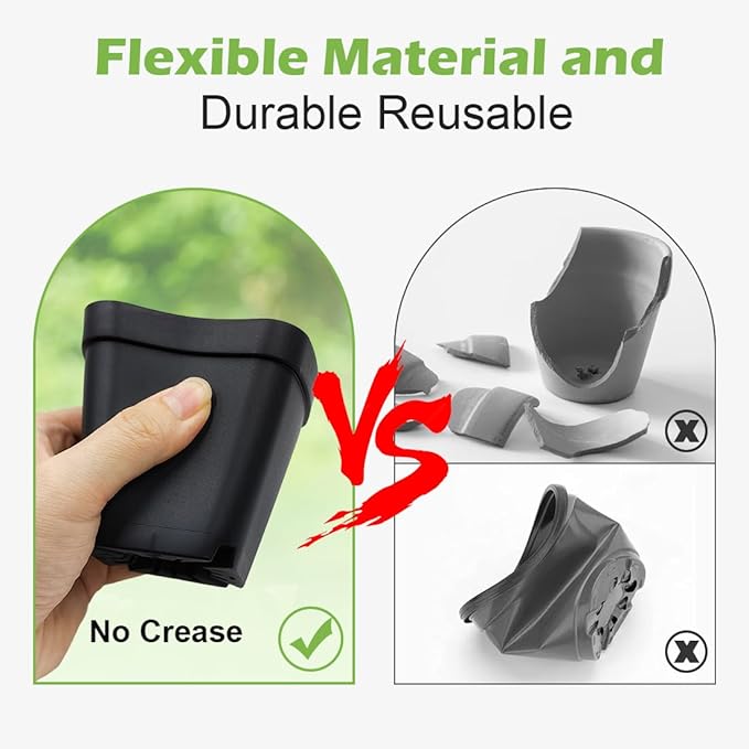 - 【Reusable Nursery Pots & Trays】Crafted from BPA-free plastic, ensuring safety for both users and plants. Made with flexible materials, these seedling pots have smooth surfaces and edges, minimizing root disturbance during transplanting and are easy to clean.