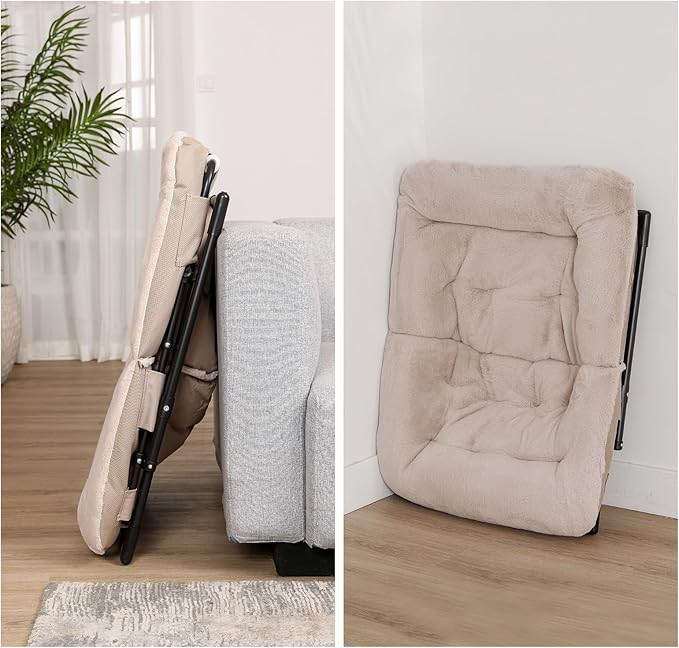 - [Comfortable Seating] : This folding chair is covered with skin-friendly faux fur and filled with fluffy cotton, offering a cozy and soft sitting experience