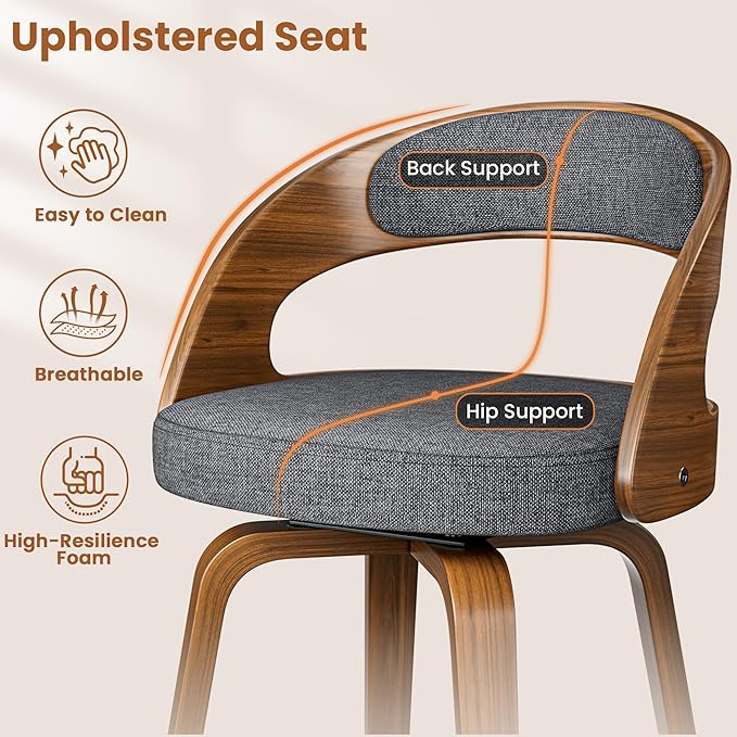 - Upholstered Seat and Ergonomic Backrest: These bar stools are designed to provide exceptional support and comfort. The seat cushion is crafted from linen fabric, which is excellent for wear resistance and breathability, and padded with a high-density sponge, ensuring a comfortable seating experience. The curved low backrest provides effective lumbar support, allowing you to relax completely