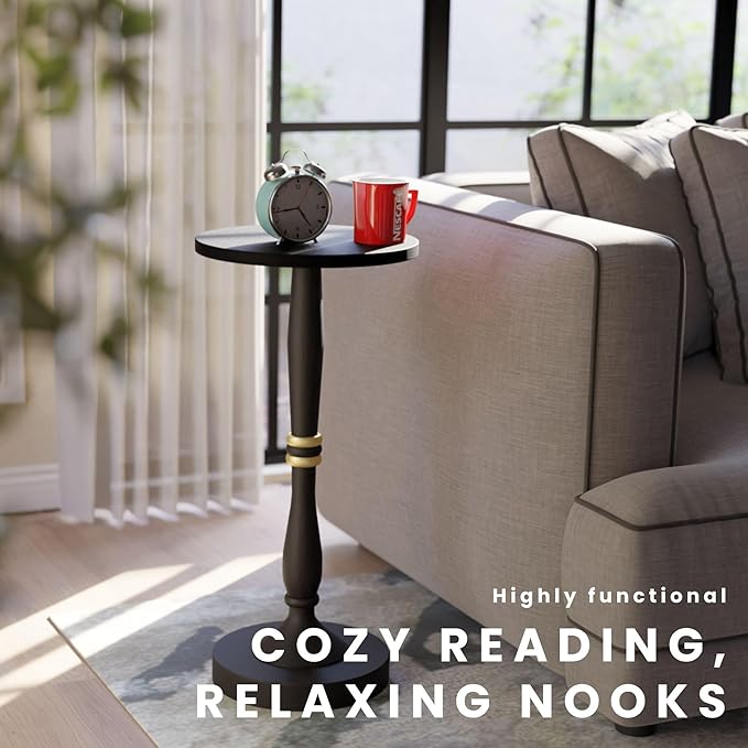 - [GREAT FOR SMALL AND NARROW SPACES]: Measuring 12” x 12”, this round end table is the perfect solution for tight corners, apartments, or small living rooms. Use as a drink table, black side table, or plant table.