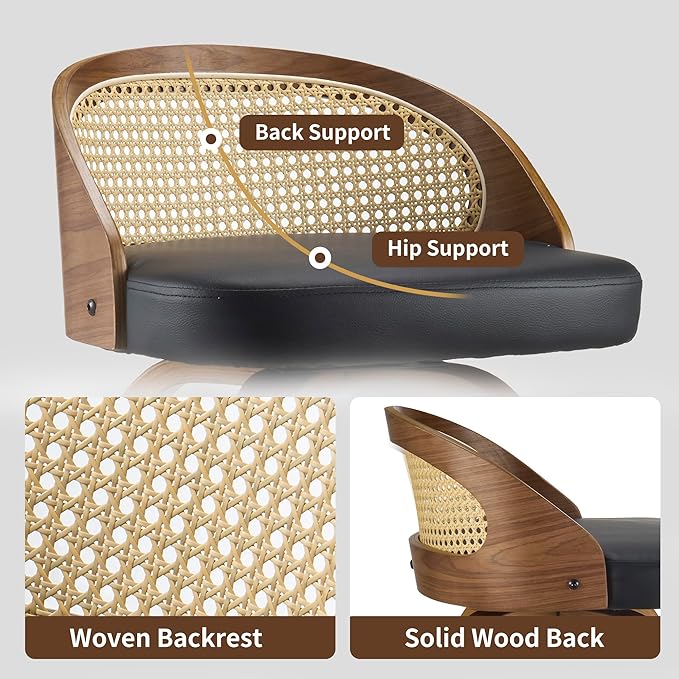 - Mid-Century Elegance with PU Leather: Featuring a walnut wood frame, a ventilated rattan back, and a smooth PU leather seat, these kitchen bar stools combine timeless mid-century style with modern texture and contrast.