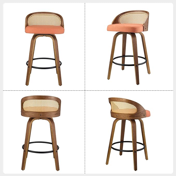 - Mid-Century Modern Design: Featuring a solid walnut wood frame and a ventilated rattan backrest, these counter height bar stools blend timeless mid-century charm with a modern twist, perfect for any contemporary space.