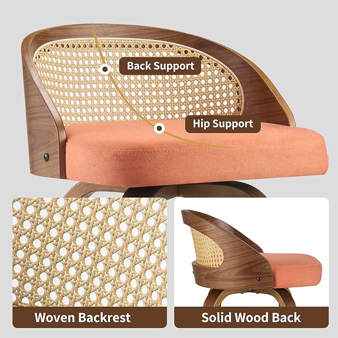 26 inch Swivel Bar Stools with Back, Set of 2 Mid-Century Modern Walnut Bar Chairs, Orange Textured Fabric Upholstered Counter Stools with Footrest for Kitchen Island & Dining Room