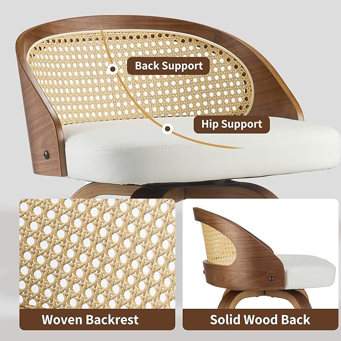 - Mid-Century Elegance with PU Leather: Featuring a walnut wood frame, a ventilated rattan back, and a smooth PU leather seat, these kitchen bar stools combine timeless mid-century style with modern texture and contrast.