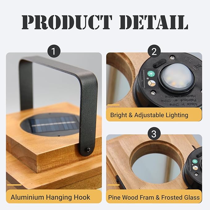 - Crafted with aluminum and pine wood for outdoor durability, paired with frosted glass provide an elegant decorative aesthetic and warm, beautiful glow in your garden, yard, or patio area