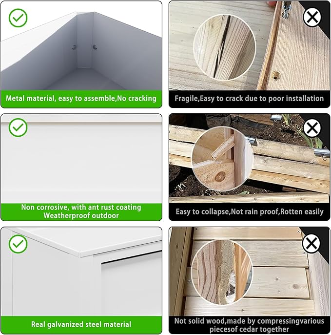 - DURABLE METAL MATERIAL: Made of stable galvanized steel raised garden beds with strong load-bearing capacity and anti-rust coating for durability. It can be placed outdoors or indoors for a long time, and the appearance can be as clean as new after wiping.