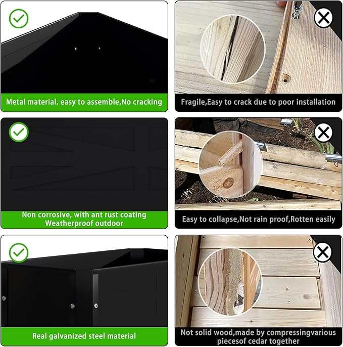 - DURABLE METAL MATERIAL: Made of stable galvanized steel raised garden beds with strong load-bearing capacity and anti-rust coating for durability. It can be placed outdoors or indoors for a long time, and the appearance can be as clean as new after wiping.