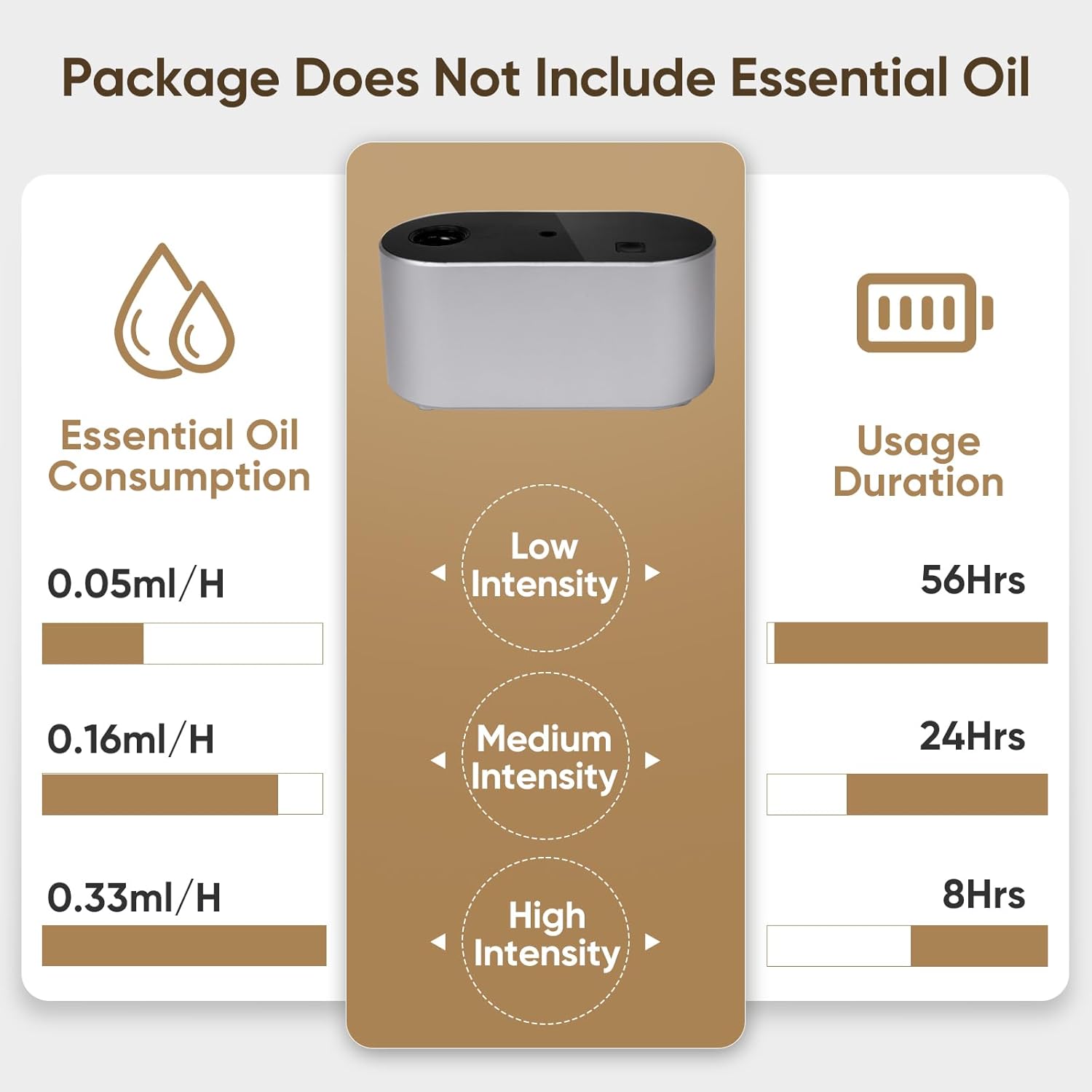 Waterless Diffuser for Home Essential Oil Diffuser, Aromatherapy Diffuser, Portable Scent Diffusers, 3 Mist Modes, Cycle Start for Bedroom, Office Studio 160 sq. ft Silver