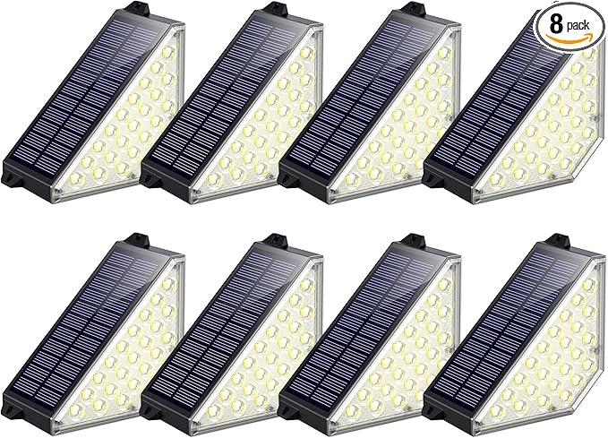 - 【Upgraded Solar Panel & 900mAh Battery】Compared with the solar panels of step lights outdoor solar powered from others, the upgraded solar panel of the TECKNET has seen its conversion rate boosted to 30%, ensuring that the step light can maintain high power generation efficiency even in low-light environments such as cloudy days, early mornings or evenings. It with a built-in 900mAh large-capacity battery, only needs to be charged in the sun for 4-5H during the day, and it will automatically turn on at dusk, providing up to 8-12H of illumination for your deck and stairs