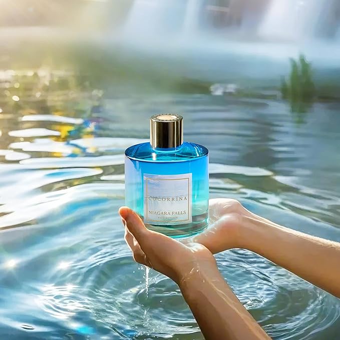 - Scent: Niagara Falls. Cool mist rushes through the air, fresh and brisk. Soft petals drift beneath the spray, grounded by warm woods — a quiet echo of nature’s force.
