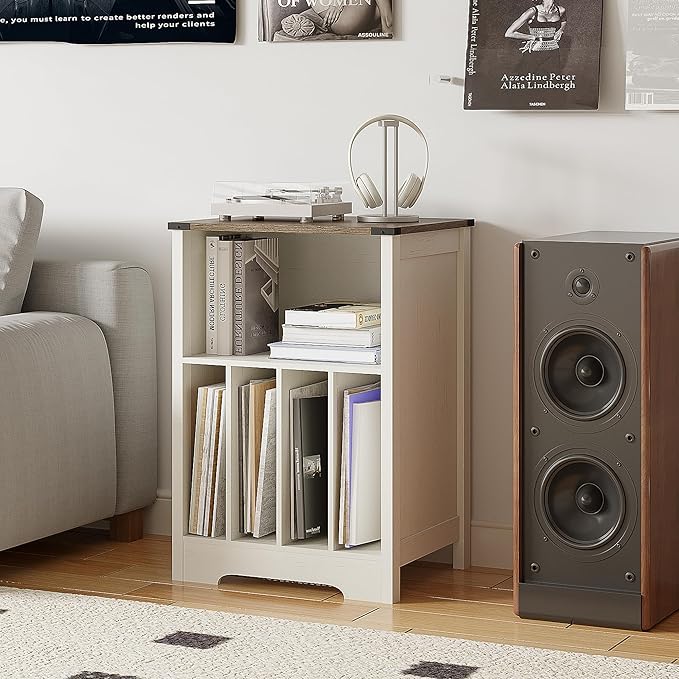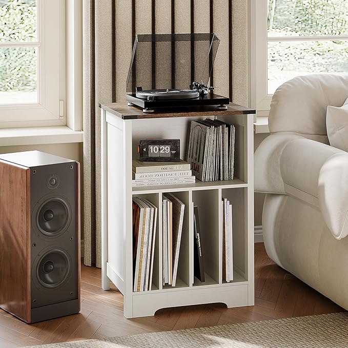 - 【Ample Storage Space】The open shelves in the upper part and the four-grid storage rack in the lower part allow you to store vinyl records according to different music styles for easy storage and organization