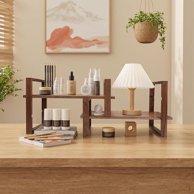 - 🍃True Natural Wood: Desktop bookshelf Crafted from natural Walnut solid wood. Perfect for book organizers, dorm desk organizers, dresser shelves and kitchen counters