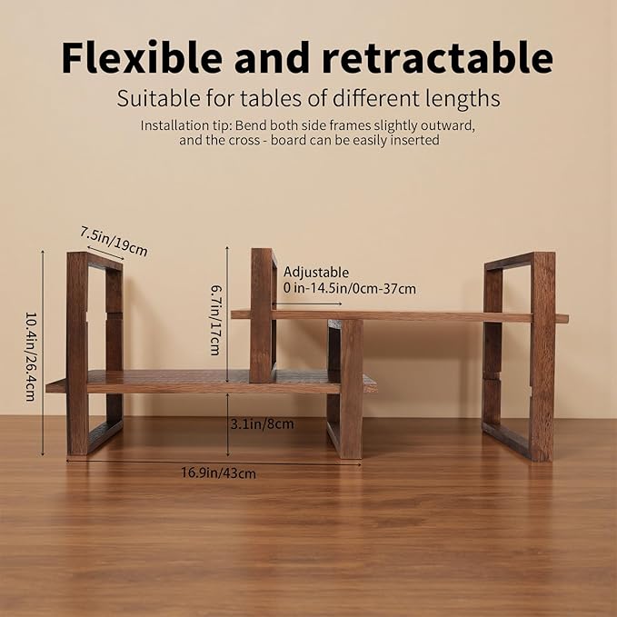 - 🪄Multi-Functional: In addition to the 2-tier shelf assembly method, multiple combinations are available, such as a Computer Desktop Booster, Kitchen spice rack, accessible shelves and corner desk shelf, making it a versatile addition to your workspace or living area