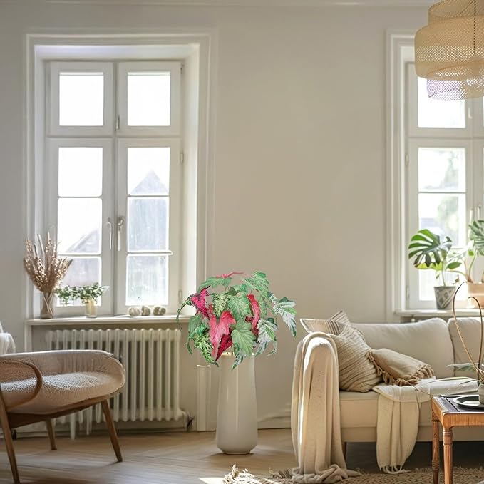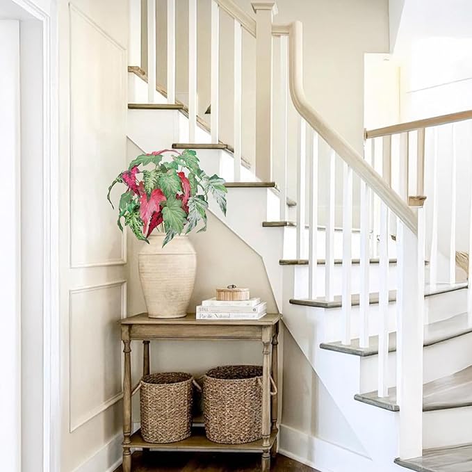 - REAL TOUCH LEAVES: Faux palm leaves have long stalks and bases, oval to arrowhead shaped,leaves have pink and green.The glossy dark green leaves display distinctive markings along the veins. These faux greenery stems are simple and elegant,It looks almost exactly like a real leaf, and many people are attracted to its unique appearance.
