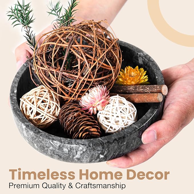 - MULTIPURPOSE BOWL – Our marble bowl is highly versatile. Use it to hold fruits, keys, or as a stylish catch-all. Perfect for any countertop, shelf, or table as modern kitchen or living room decor.