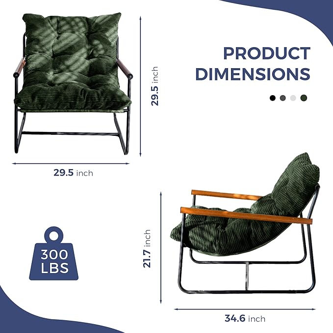 - Sturdy Construction: Featuring a sturdy metal frame and wooden armrests that provide the stability and durability of this chair with a weight capacity of up to 300 lbs, giving you the comfort whether you're reading, watching TV, or enjoying your morning coffee