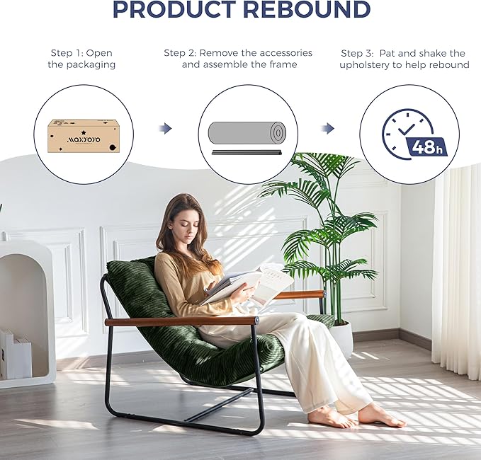 - Easy Assembly: The arm rest made of FSC-Certified wood. Setting up this chair is a breeze, with all necessary tools, instructions, and components included, allowing you to have it assembled and gracing your space within 15-30 minutes. The cushion recovers its elasticity after about 48 hours of breathing for a superior feeling of use