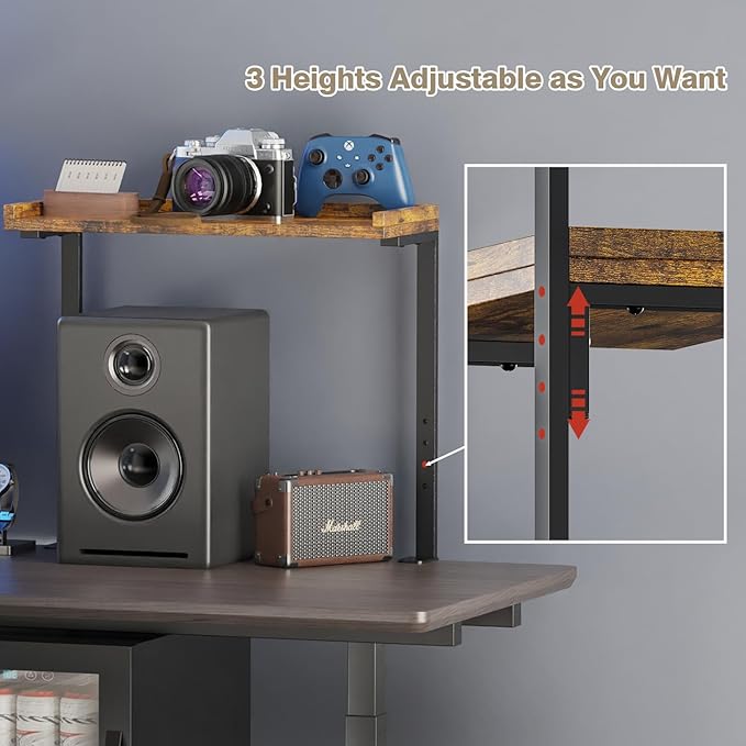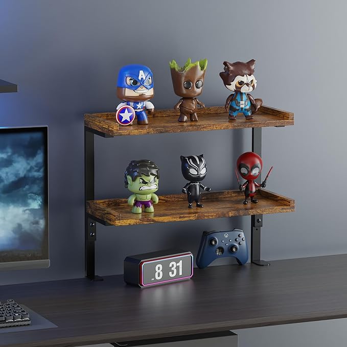 - [Great Organizer at Home/office] -- Our brown desk shelf can be used upside down, it can be mounted not only above the table as usual, but also below it, maximizing its functionality to meet your needs. Two-layer shelf offers spacious storage space for office supplies, books, gaming devices,etc