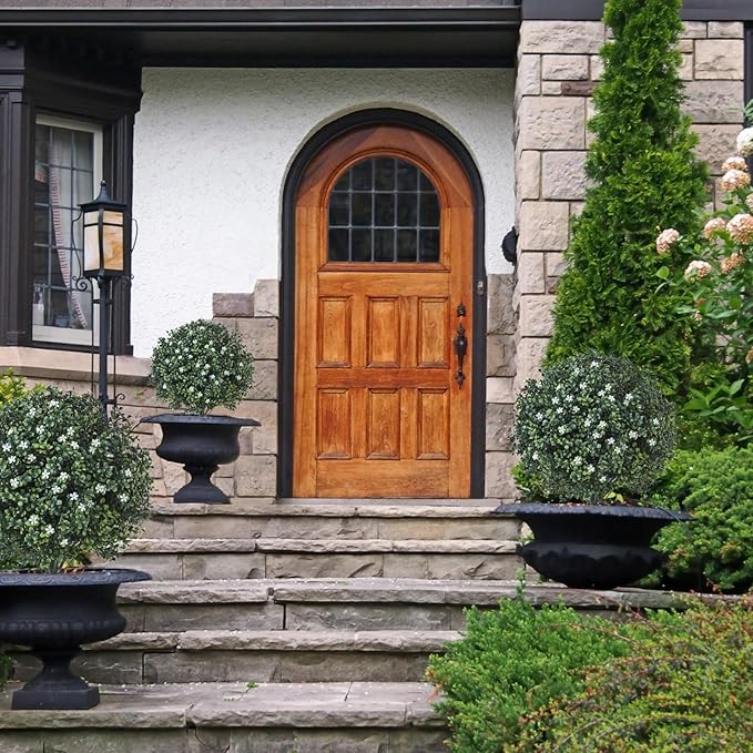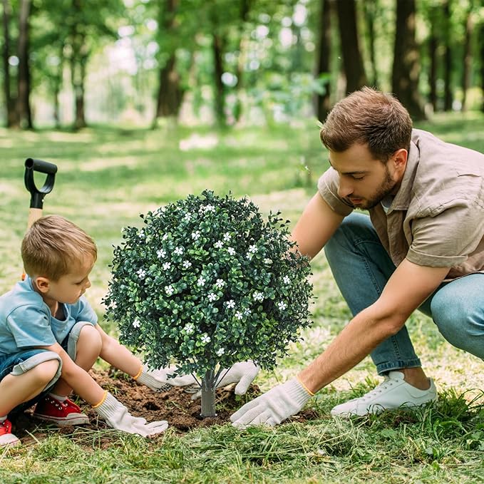 - ✔️ Realistic & Lifelike Appearance: The set of 2 artificial boxwood topiary balls with white flowers stand 23.6" tall. The dense foliage and detailed color variations, combined with a lifelike textured trunk, make them a perfect replica of real plants, ideal for adding a touch of greenery to any space.
