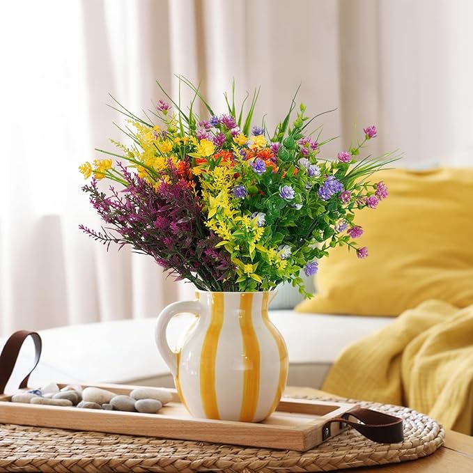 - Lasting and durable: These flowers for outside are made up of high-quality plastic materials, which is sturdy and durable enough for any weather. It is UV resistant, not easy to fade. They can keep bright colors even after a long time of use.