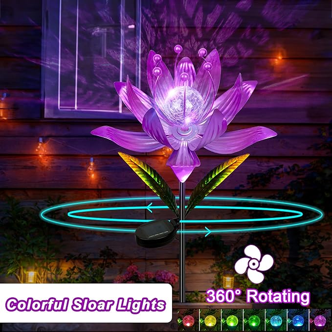 - 【 Colorful Wind Spinner 】Designed according to the shape of lotus flower, wind spinners outdoor is made of sturdy metal structure and exquisite welding technology. The surface is coated with rust-resistant graphic layer, which can prevent the metal from rusting and fading.