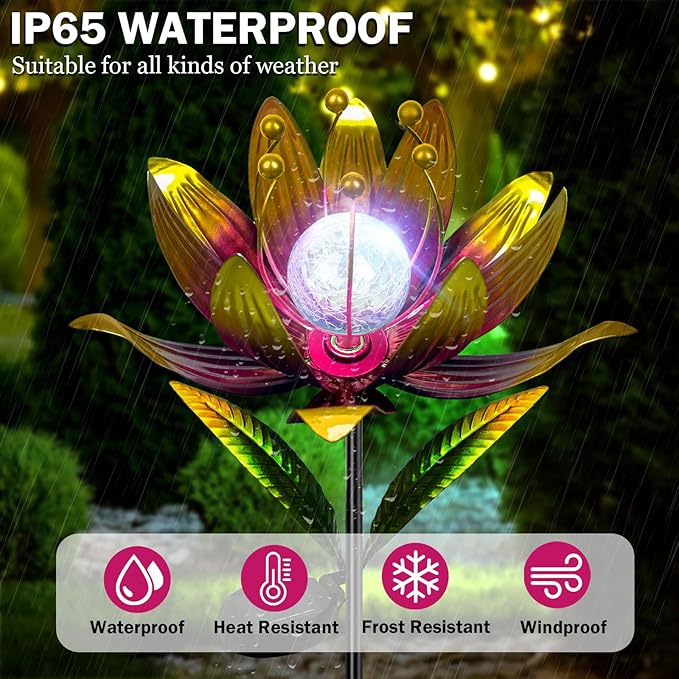- 【 Colorful Wind Spinner 】Designed according to the shape of lotus flower, wind spinners outdoor is made of sturdy metal structure and exquisite welding technology. The surface is coated with rust-resistant graphic layer, which can prevent the metal from rusting and fading.