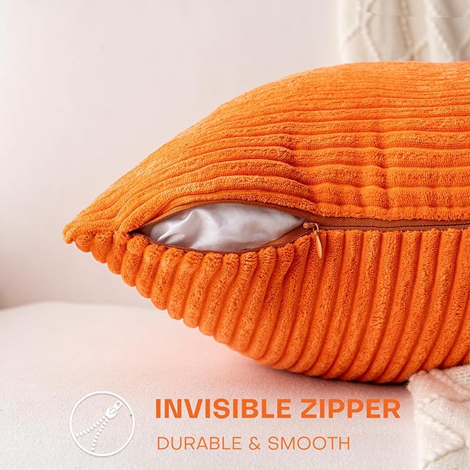 - 𝐃𝐨𝐮𝐛𝐥𝐞-𝐒𝐢𝐝𝐞𝐝 𝐃𝐞𝐬𝐢𝐠𝐧:Get double the style with throw pillow covers for home decor. The cushion cases feature a unique diagonal corduroy panel on the front for a bold, eye-catching look. Flip the throw pillows cases for couch over to reveal the back’s clean, corduroy stripes—a minimalist option. Perfect for changing up your throw pillow covers for living room, bedroom, farmhouse, home.