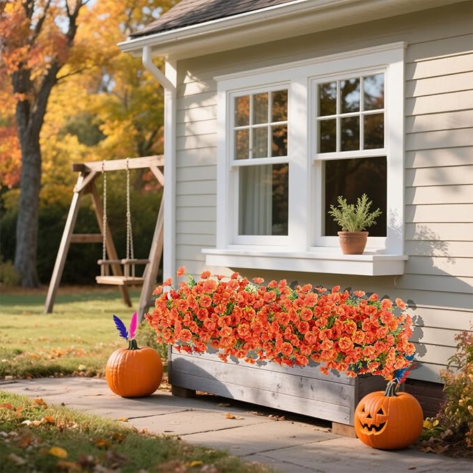12 Bundles Fall Flowers Artificial for Decoration, Fake Flowers Artificial Plants Outdoor, Colorful Faux Morning Glory Realistic UV Resistant for Garden Patio Porch Home Decor (Orange)