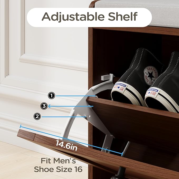 - Stylish and Versatile Design: Our Shoe Storage Bench boasts a classic design that fits seamlessly into any entryway or bedroom, making it the perfect storage solution that complements your decor while keeping your space organized.