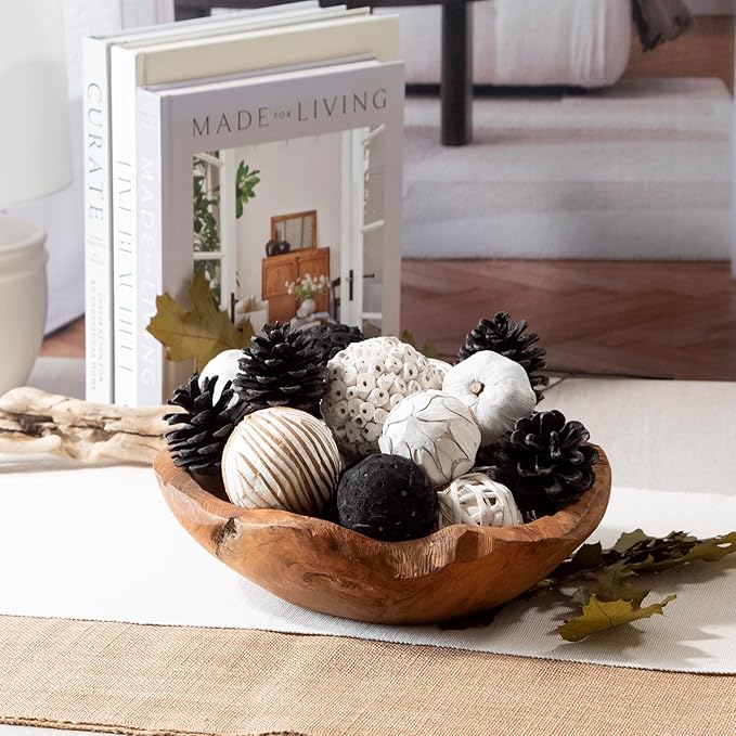 Natural Tones Vase & Bowl Mini Pumpkins Pinecone Fillers Decorative Balls | Home Decor (Black & White)