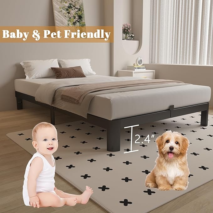 - [Baby & Pet-Friendly Low Profile]-The twin metal bed frame is thoughtfully designed with a low profile, making it especially safe for kids and pets. The lower height reduces the risk of injury from climbing or falling, providing peace of mind for the whole family. Plus, it’s perfect for high mattresses, ensuring a snug and secure fit without compromising on comfort or support.