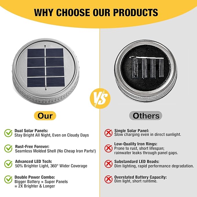 - 《Real Power, No Pretend Numbers》No fake 600mAh claims here. Our lab-verified 200mAh battery outlasts them all—shining 1.8× larger than so-called “high-capacity” lights. Backed by a high-efficiency monocrystalline panel (215% larger than before) and a boosted LED, it projects light that doesn’t just shimmer—it cuts through the mosaic to cast clear, vibrant reflections even after a long cloudy day.