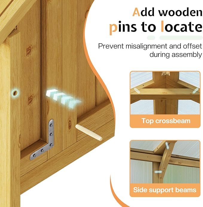 - Spacious Interior: Greenhouse wood with a 4.86ft wall height and 6.46ft peak height, this greenhouse provides ample space to move around, ideal for gardening, relaxation, and more