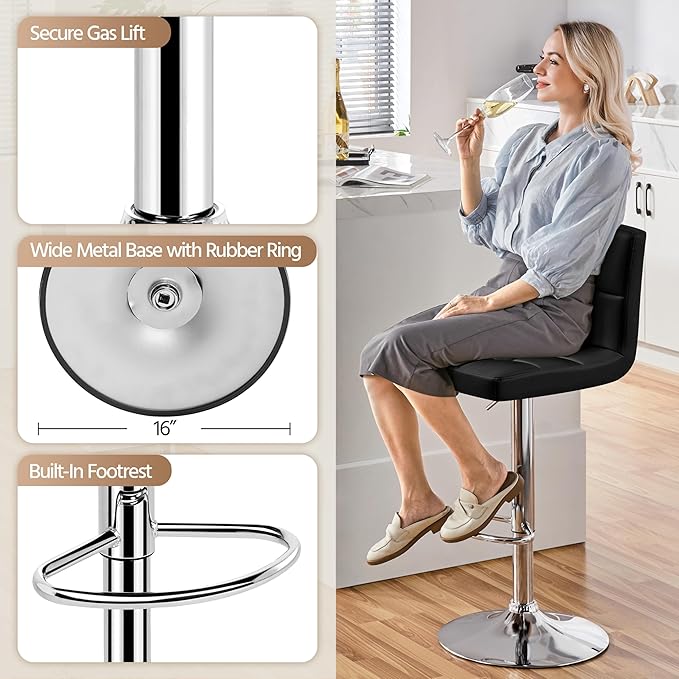 - Selected Materials: Premium steel, high-density foam, and solid plywood combined with a robust structure and durable gas lift system, this swivel bar stool performs well in durability and safety, capable of bearing 300 lb