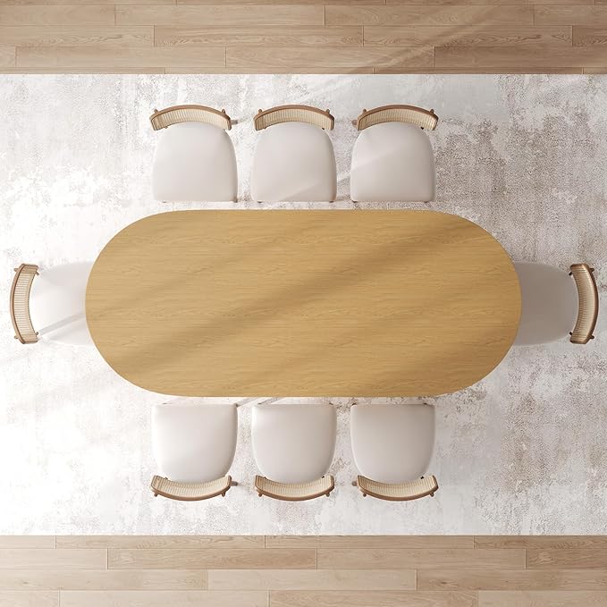- 【Modern & Stylish Design】Inspired by Art Deco design, this oval dinning table combines gorgeous arched base and natural wood grain texture, offering a clean and sophisticated look, which makes the modern dining table a stunning centerpiece for any dining space.