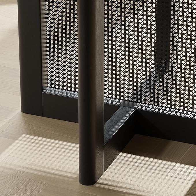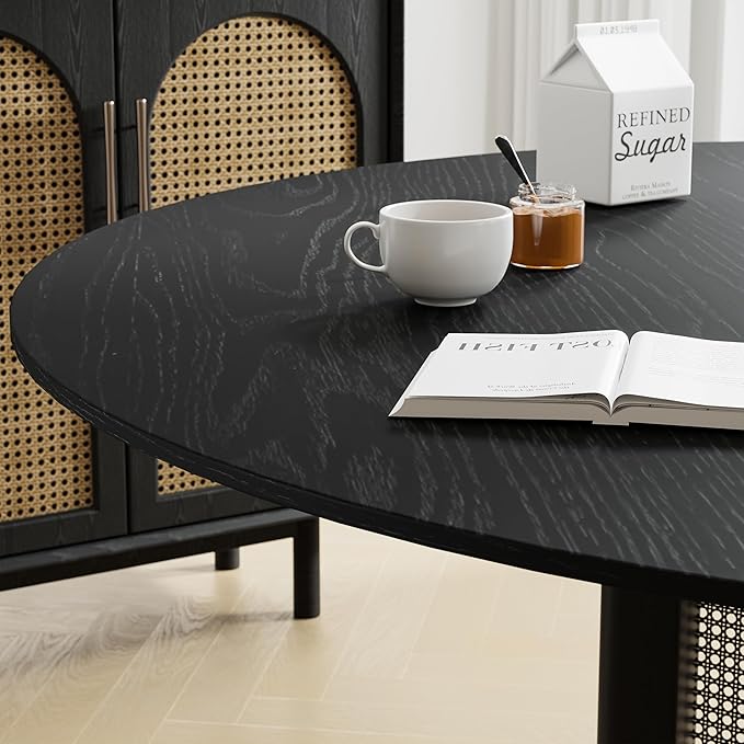 Casaphoria 60" Round Dining Table, Modern Kitchen Table for 8, Scratch-Resistant Top & Rattan Base, Farmhouse Dinner Table for Living Room, Kitchen, Bar, Easy Assembly, Black